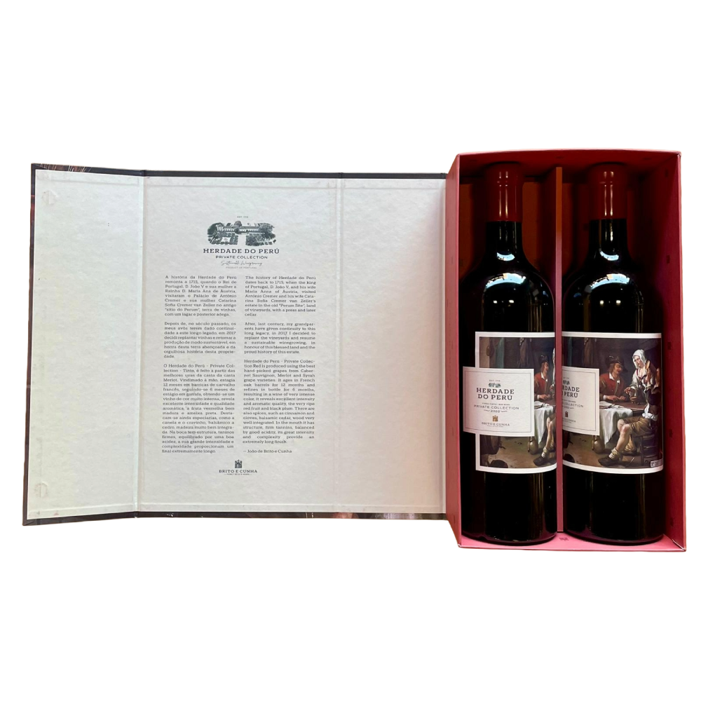 O Herdade do Perú Private Collection – Tinto destaca-se pela sua cor vermelha aberta. No nariz aparece a fruta vermelha com notas de cacau, ameixa, chocolate, compota de pimentos equilibrada por notas de baunilha, toffee e especiarias. Na boca vinho com muita intensidade com taninos aveludados, mas bem presentes e a dar continuidade à prova. Termina longo e profundo com uma acidez refrescante e que lhe vai garantir tempo de garrafa.